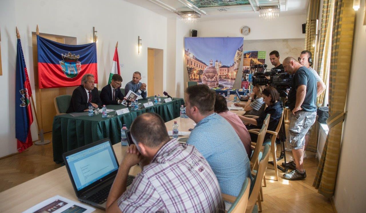 Csepreghy Nándor, a Miniszterelnökség miniszterhelyettese, Vargha Tamás, Székesfehérvár országgyűlési képviselője, a Honvédelmi Minisztérium miniszterhelyettese, valamint dr. Cser-Palkovics András, Székesfehérvár polgármestere a Hiemer-házban tartottak közös sajtótájékoztatót a Modern Városok Program keretében megvalósuló székesfehérvári fejlesztésekről.
